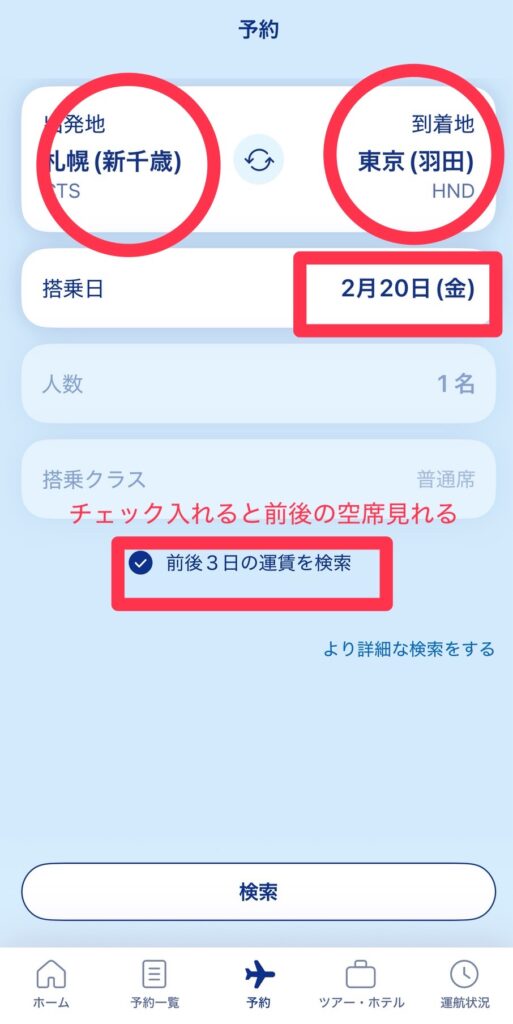国内線の航空券の検索を練習してみましょう!