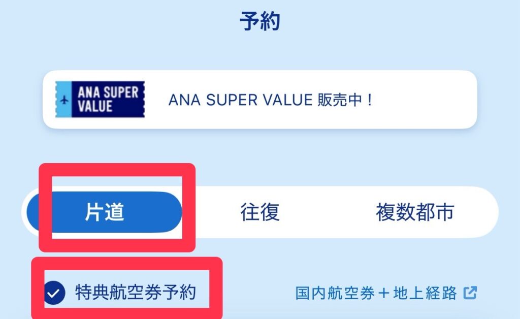 2️⃣片道・特典航空券の予約 を選択する