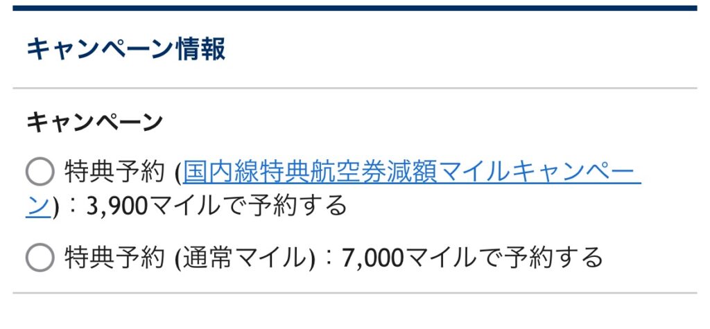 減額マイル実施日は、このような2択が出てくるので「特典予約」を押して予約してください。