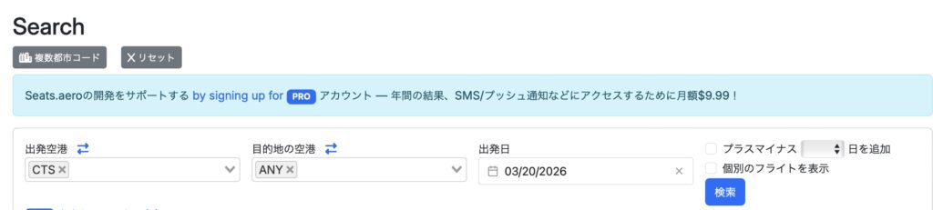 こちらからseats.aero にアクセスする