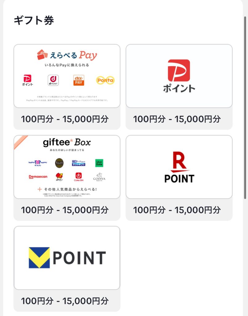 えらぺるPay、gift Boxを合わせると、交換先はたくさんあります!